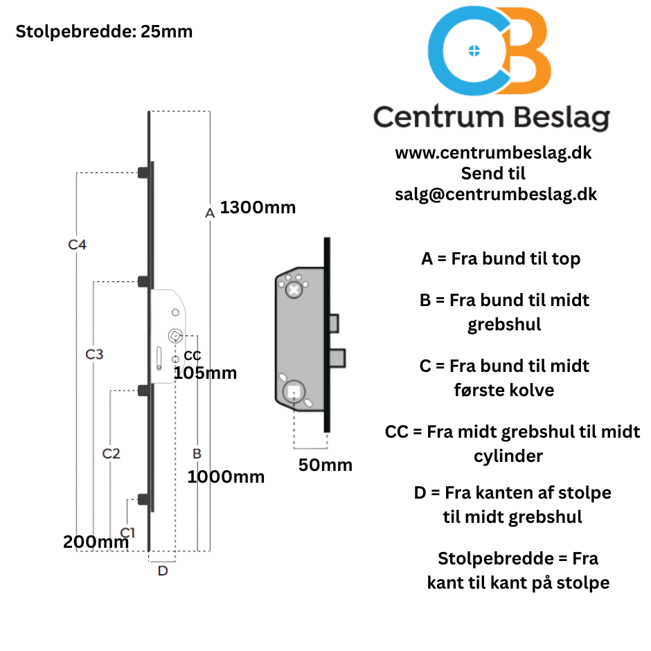 Paskvil 955 BA51 til terrassedør låsbar underdel 1300mm dorn 50, FIX